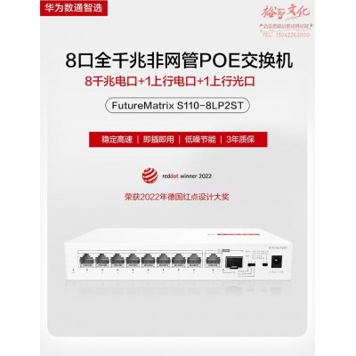 华为数通智选8口千兆POE供电交换机S110-8LP2ST 8口千兆电+1上行电口+1上行光口企业级中小企业 SKU:yzwhyp328168