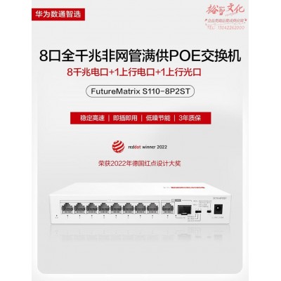华为数通智选8口满供千兆POE供电交换机S110-8P2ST 8口千兆电+1上行电口+1上行光口企业级POE交换机 SKU:yzwhyp328174