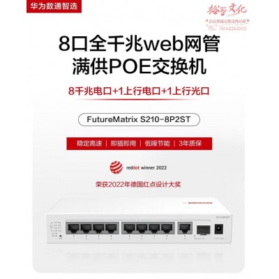 华为数通智选8口满供千兆web网管POE交换机S210-8P2ST 8口千兆电+1上行电口+1上行光口企业级POE交换机 SKU:yzwhyp328175
