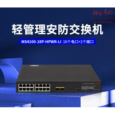 新华三(H3C)MS4100-18P-HPWR-LI L2轻管理安防以太网POE交换机主机(16电口+2 SFP光口) SKU:yzwhyp328270