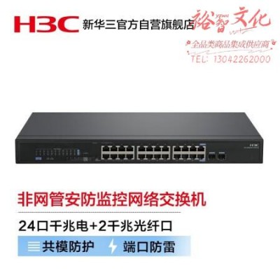 新华三(H3C)安防监控24口千兆电+2千兆光纤口非网管企业级网络交换机 网线分流器/高速稳定传输 MS4024P-EI SKU:yzwhyp328288