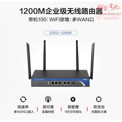 新华三(H3C)1200M双频千兆5G高速企业级无线路由器 带机100 WiFi穿墙/多WAN口 ERG2-1200W SKU:yzwhyp328346