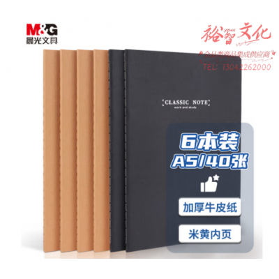 晨光(M&G)文具A5/40页缝线本 记事本笔记本子 京优本质系列米黄内页学生软抄本 6本装APYFJ77C SKU:yzwhyp328380