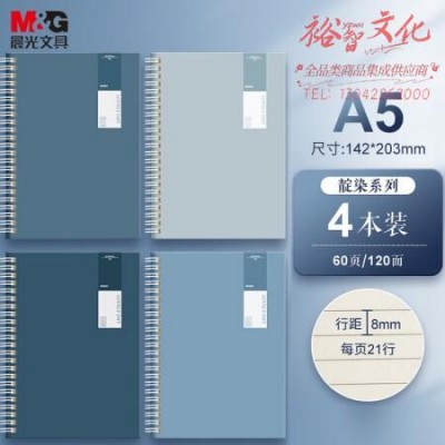 晨光(M&G)文具a5笔记本本子 高颜值线圈本记事本小 60张初中错题本学生手账本日记本作业本 靛染4本装 XA5625 SKU:yzwhyp328393