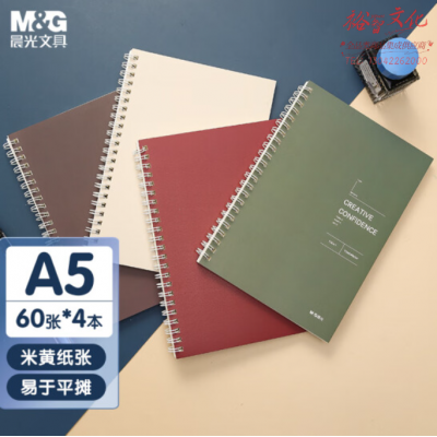 .晨光文具A5/60张螺旋线圈本 笔记本子错题记事本 学生日记本 遐想之屿4本装 XA5627 SKU:yzwhyp328394