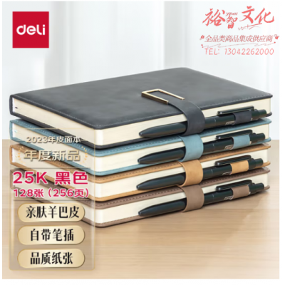 得力(deli)25K/128张羊巴皮笔记本子 加厚软面皮面本记事本日记本办公用品 黑色BP149 SKU:yzwhyp328465