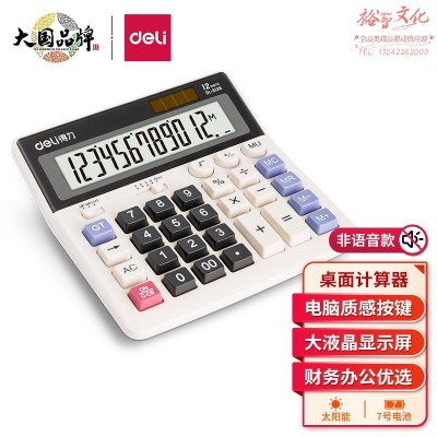 得力(deli) 双电源电脑按键计算器 12位大屏横式桌面计算机 金融财务/银行计算 办公用品 白色2136 SKU:yzwhyp112096