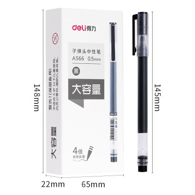 得力(deli) 12支/盒 大容量中性笔4倍书写大容量签字笔0.5mm子弹头1支A566黑 SKU:yzwhyp112102