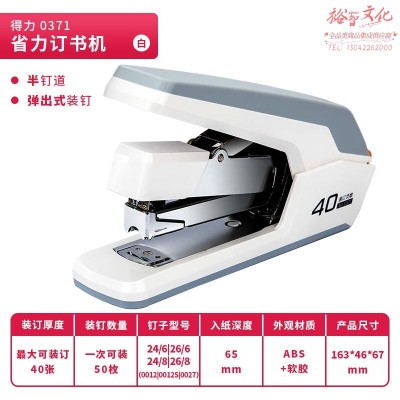 得力(deli) 12台/箱 省力型订书机/订书器适配24/6,26/6及24/8订书钉办公用品白色0371 SKU:yzwhyp112106