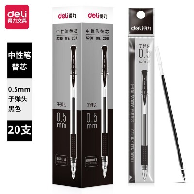 得力(deli) 20支/盒 S790中性笔芯替芯0.5mm黑色子弹头 SKU:yzwhyp112109