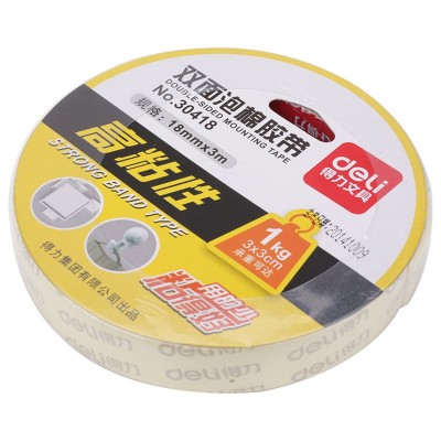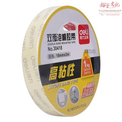 得力(deli) 30418双面泡棉胶带 强粘性油性胶18mm*3m*1mm(白) SKU:yzwhyp112168