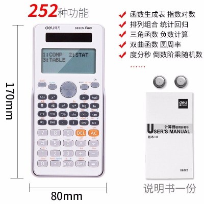 得力(deli)D82ES 科学多功能函数计算器 考试推荐工程会计金融太阳能双电源计算机【白色英文】252种功能 SKU:yzwhyp112176