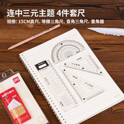 得力(deli) 学生学习考试绘图教学用品尺子学生文具套尺含直尺+三角尺+三角尺+量角器尺子套 71961 答题卡套尺 SKU:yzwhyp112192