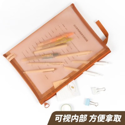 天色(TIANSE)透明网纱文件袋复古色系资料文具大容量收纳学生拉链考试试卷收纳袋 B6-琥珀棕 TS-255 SKU:yzwhyp112321