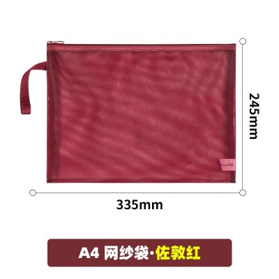 天色(TIANSE) 透明网纱文件袋复古色系资料文具大容量收纳学生拉链考试试卷收纳袋 A4-佐敦红 TS-253 SKU:yzwhyp112336