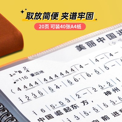 天色(TIANSE) 横式乐谱夹 可书写资料册钢琴谱夹曲谱书夹子A4/40页 乐谱配件不反光 TS-1641 SKU:yzwhyp112344