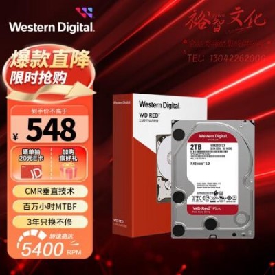 首页 > 信息化设备 > 移动存储设备 > 西部数据 NAS硬盘 WD Red Plus 西数红盘Plus 2TB 5400转 64MB SATA CMR (WD20EFPX)