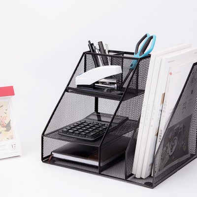 广博(GuangBo) 金属网状多功能文件框/文件筐/带笔筒收纳架办公用品 黑WZ9316 SKU:yzwhyp112542