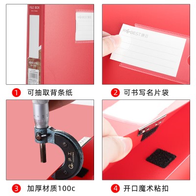 康百(kobest)大容量文件盒红色资料盒子多功能档案盒 厚3.5cm F1135R-红色 SKU:yzwhyp112656
