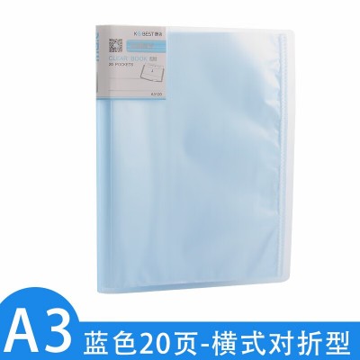 康百(kobest)A3对折型试卷资料册多层文件夹透明插页袋 蓝色-横式20页-A3120 SKU:yzwhyp112676