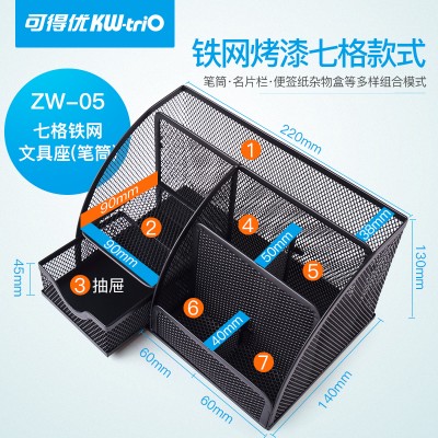 可得优(KW-triO)ZW-05多功能铁网组合文具座(七格) SKU:yzwhyp112738