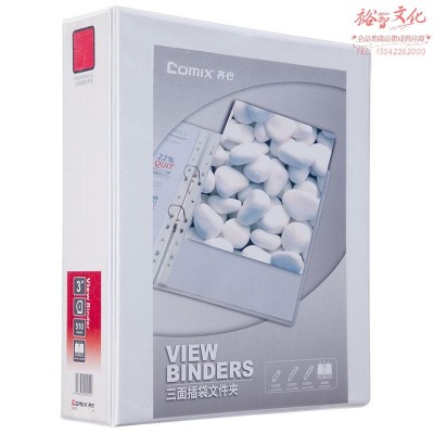 齐心(COMIX)A0236 A4 3寸4孔 D型夹 容纸量51mm 易展示美式三面插袋 文件夹 白色 SKU:yzwhyp112790
