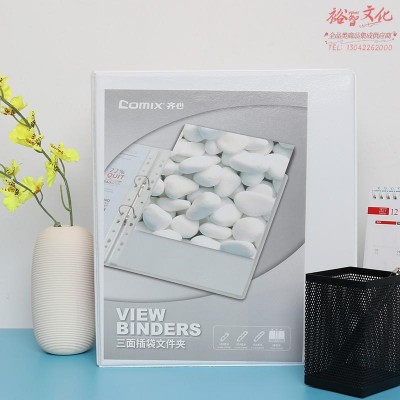 齐心(COMIX)A0209 易展示 美式三面插袋文件夹 A4 1寸2孔D型夹 白 SKU:yzwhyp112899
