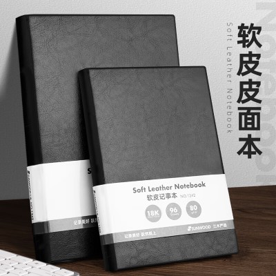 三木(SUNWOOD) A5/25K96张黑色办会议记录皮面日记商务记事本软皮面本单本装1342 SKU:yzwhyp112979