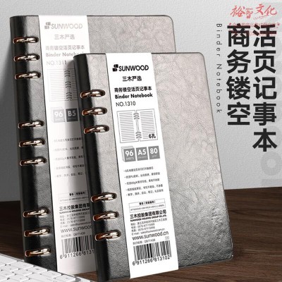 三木(SUNWOOD) A5/25K 96张黑色镂空活页本办公商务记事笔记本日记本会议本草稿本单本装1310 SKU:yzwhyp112981