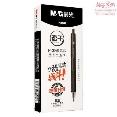 晨光(M&G)文具MG666/0.5mm黑色中性笔速干考试签字笔按动子弹头水笔12支/盒AGPH8401考研文具 SKU:yzwhyp113004