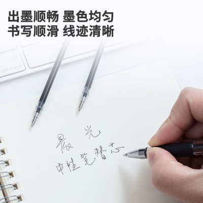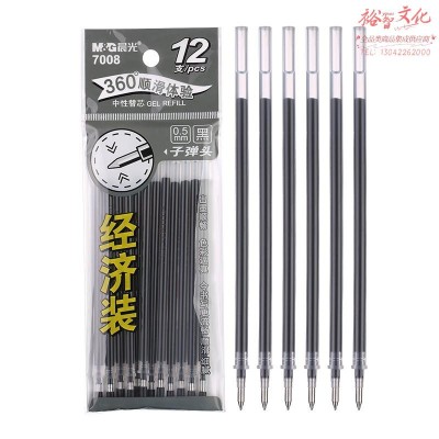 晨光(M&G)文具0.5mm黑色中性笔芯经济装拔盖子弹头签字笔替芯碳素黑水笔芯12支/袋7008 SKU:yzwhyp113012
