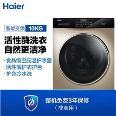 海尔 EG10012B509G 滚筒洗衣机全自动 巴氏杀菌除菌率99 10KG变频节能
