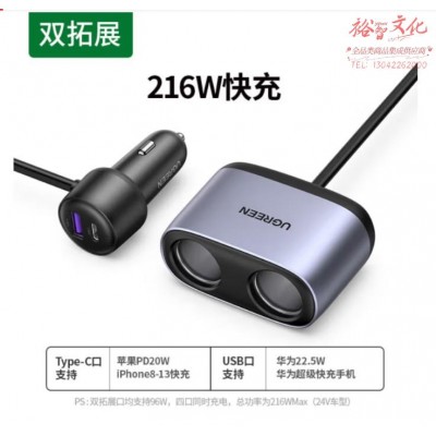 绿联车载充快充PD20w充点烟器转换usb适用苹果15手机 30886 SKU:yzwhyp800252