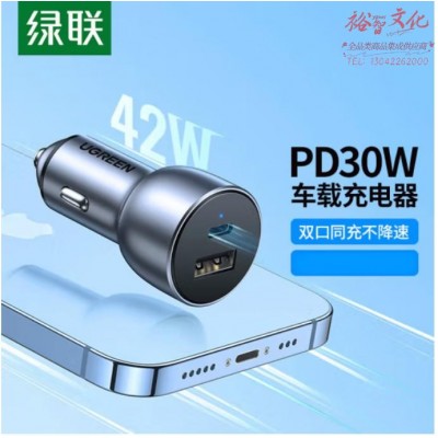 绿联车载充电器42W超级快充 苹果14充电头汽车点烟器一拖二车充华为 CD213-70309 SKU:yzwhyp800255