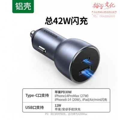 绿联绿联车载充快充PD20w充点烟器转换usb适用苹果15手机 60980 SKU:yzwhyp800257