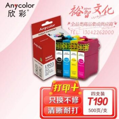 欣彩 T190墨盒套装 黑/蓝/红/黄四色 T1901适用爱普生EPSON ME303 ME401打印机 SKU:yzwhyp800412
