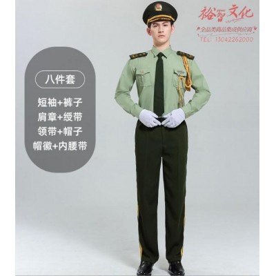 首页 > 装具 > 制服 > 男女款夏季礼宾服升旗手文工团军乐队服装演出服军鼓制服套装 八件套短袖长裤 SKU:yzwhyp800457