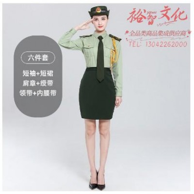 首页 > 装具 > 制服 > 男女款夏季礼宾服升旗手文工团军乐队服装演出服军鼓制服套装六件套短袖短裙SKU:yzwhyp800460