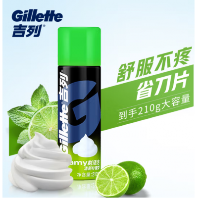 吉列(Gillette) 手动剃须刀剃须泡沫刮胡膏 剃须刀须后水 清新柠檬型剃须泡210g(5瓶起售)