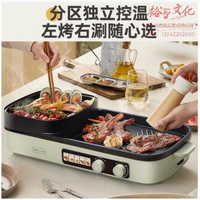 小熊(Bear)烤涮一体两用锅烤肉火锅一体家用涮烤一体火锅烤肉锅一体多功能锅电烤盘电烧烤炉DKL-E20V1 SKU:yzwhyp801083