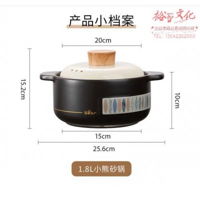 小熊伊万(BEAREWAN)砂锅 砂锅煲汤锅炖锅燃气灶陶瓷锅宽口家用沙锅CP-G0070-P01 1.8L SKU:yzwhyp801154