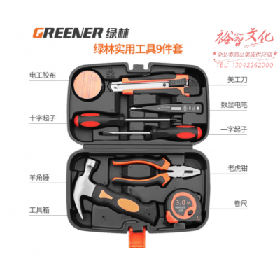 绿林(GREENER)9件套 家用工具箱套装电工五金工具螺丝刀维修钳子卷尺组合包 SKU:yzwhyp801195