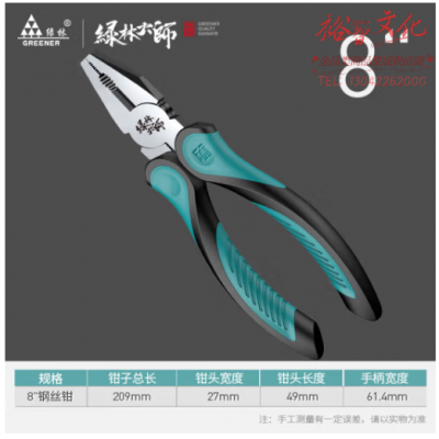 绿林(GREENER)老虎钳钢丝钳8寸家用钳子省力工业级多功能虎口钳大师系列剪线钳 SKU:yzwhyp801239