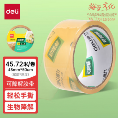 得力(deli)30292纤维素膜封箱胶带 可降解 易撕 45mm*50y*50μm 1卷装 SKU:yzwhyp801326