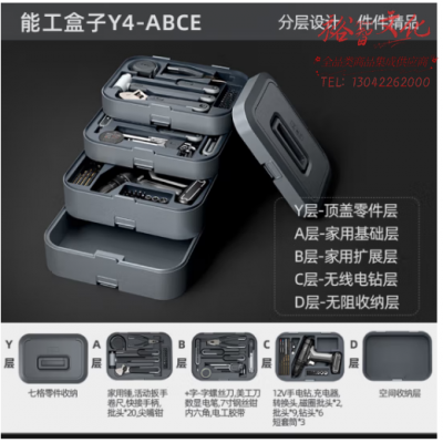 绿林(GREENER)家用工具箱套装 12V手电钻电动螺丝刀卷尺 能工盒子Y4-ABCE SKU:yzwhyp801335