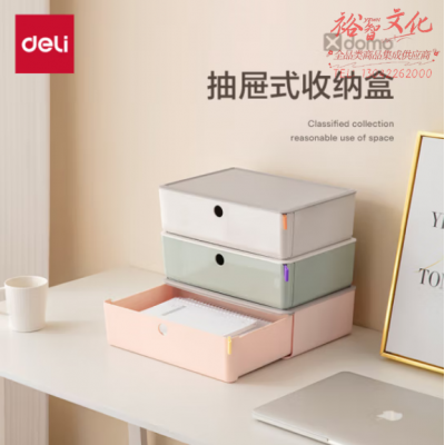得力(deli)XDM30抽拉式收纳盒 防尘整理盒 绿色 SKU:yzwhyp801417