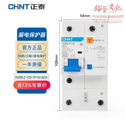 正泰(CHNT)NXBLE-125-1P+N-C80-30mA 小型漏电保护断路器 漏保空气开关 SKU:yzwhyp801427