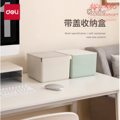 得力(deli)XDM13桌面收纳框 办公收纳盒 防尘整理盒 绿色带盖高款方形 SKU:yzwhyp801529