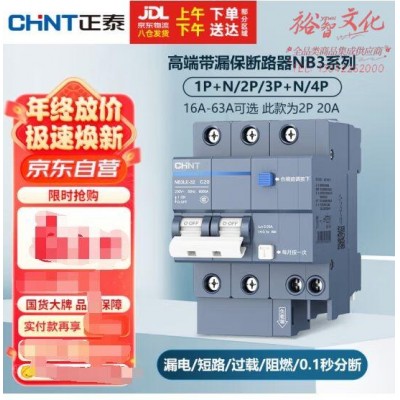 正泰(CHNT)小型断路器 家用漏电保护器 空开带漏保2P 20A家用总闸NB3LE-32 SKU:yzwhyp801621