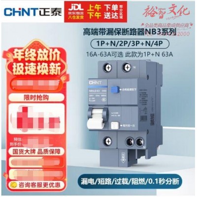 正泰(CHNT)断路器 空气开关带漏电保护开关 家用总闸空调1P+N 63A NB3LE-63 SKU:yzwhyp801627